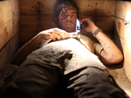 予告編を見た段階で凄く気になった作品。今や、すっかり一ジャンルとしての地位を築いたワンシチュエーションスリラーだが、これは恐らく史上最も狭い空間で表現された映画であろう。イラクで働くアメリカ人のトラック運転手である主人公・ポールが閉じこめられた棺の中で目覚める所から始まり、外部のシーンも回想シーンも一切出て来ないまま、最後まで棺の中だけで完結してしまうのである。ポール以外の登場人物の顔は、You Tubeの映像で1〜2分程映し出されるもう一人の被害者だけで、あとは携帯電話を通した声のみの為、電話相手の風貌も表情も全く分からず、善意も悪意も真偽の程も想像する事しか出来ない。劇中時間と上映時間がイコールと言うリアルタイム作品だ。