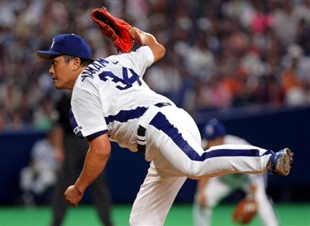 依然としてナゴヤドームで精彩を欠く巨人はこの日も大苦戦。先発・ゴンザレスが初回、川相不在では一発に賭けるしかないとばかりに森野に18号先制アーチを被弾。早くも追いかける展開となった巨人は直後の2回、一死から江戸川がヒットで出るも、長野がセカンドゴロゲッツー。3回には二死から坂本の四球,矢野の二塁打で二、三塁と一打逆転のチャンスを作るが、ガッツが三振に倒れて、二者残塁。更に、4回には一死から阿部がヒットで出た後、江戸川がサードゴロゲッツーと一向に得点を奪えない。すると、その裏、立ち直りかけていたゴンザレスが一死からベンちゃんの二塁打,ブランコの四球で一、二塁のピンチ。ここで野本にセンター前へタイムリーを許すと、続く堂上直にもタイムリーを浴びて、3点目を献上。巨人は5回以降二塁も踏めず、ゼロ行進の儘、土壇場9回へ突入。簡単に二死を取られた後、寿司職人ラミレスが二塁打を放つが、阿部はセカンドフライに倒れて、悪夢のナゴヤドーム8連敗。中日先発・山本昌はこれまでの最年長完封記録である若林忠志の42歳8ヶ月を大幅に更新する45歳での完封勝利で4連勝を飾った。