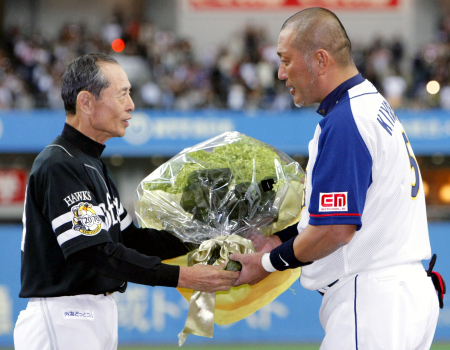 史上初の3年連続先発登板となったダルビッシュ(日本ハム)が初回から寿司職人ラミレス(巨人)の打球を肩に受けてしまい、予定を繰り上げ、1回限りでの降板を余儀なくされる波乱の幕開けとなったオールスター第1戦。落合監督(中日)の陰謀により、現役復帰を果たせなかった名手・川相(中日)を欠く苦しい展開の全セは初回から荒木(中日)のエラーで先制点を献上といきなり川相不在の弊害を露呈。3回には、相変わらず、故障に弱い虚弱体質ぶりを露呈し、DHとしてすら規定打席に到達出来ず、かつ中途半端極まりない数字しか残しておらず、本拠地・札幌で開催すると言う要素以外、ファン投票1位になる理由が皆目見当たらないあの男(日本ハム)がセ・リーグ最多勝・館山(ヤクルト)から右中間へ二塁打を浴びせると、一死後、井口(ロッテ)のタイムリーで全パが1点を追加。2点を追う全セは4回、全パ2番手・田中(楽天)に対し、寿司職人ラミレスが川相不在では一発に賭けるしかないとばかりに左中間スタンドへオールスター通算3本目となるホームランを叩き込み、ようやく1点を返すと、5回にはWBC使用球はからっきしだが、NPB使用球ならお手の物な岸(西武)から内川(横浜),阿部(巨人)の連打で一、三塁とした所で荒木が汚名返上の犠飛を打ち上げ、同点。更に、6回には青木(ヤクルト),ガッツ(巨人)の連続二塁打で勝ち越しに成功するが、一気に畳み掛けたい所で寿司職人ラミレス,キュラソ星人(阪神),ブランコ(中日)が三者連続三振に斬って取られ、1点止まり。その裏、若大将・原監督(巨人)は川相不在と言う絶体絶命の状況を打開すべく、落合監督のお茶濁し采配をパクって、開幕10連勝中の川井(中日)を投入。しかし、所詮、カワイであって川相ではない川井ではチームの空気を変える事は出来ず、一死から高橋(日本ハム),中島(西武),草野(楽天)と3連打を浴びると、里崎(ロッテ)には押し出し四球で同点としてしまう体たらく。なおも満塁の場面だったが、第1打席でインケツパワーを放出しきってしまったあの男がライトへの浅いフライを打ち上げてしまうと、強引に勝ち越しを狙った中島が本塁憤死し、同点止まり。しかし、続く7回、全パは代打・サブロー(ロッテ)の内野安打の後、川崎(ソフトバンク)のピッチャーゴロを川井が二塁へ悪送球。更に、稲葉(日本ハム)のセーフティバントをガッツが一塁へ悪送球と相次ぐ拙守で、サブローに続いて川崎の生還まで許してしまい、勝ち越しの2点を献上。川相不在の重さを痛感し、落胆の色を隠せない川井はこの後、中村(西武)に二塁打を浴びると、高橋,金子誠(日本ハム)と連続タイムリーを許し、更に、草野のゲッツーの間にも1点を返され、この回悪夢の5失点。しかし、粘る全セは8回、この回から代わった5番手・有銘(楽天)に対し、青木の四球,ガッツのヒットで一、三塁とした所で寿司職人ラミレスがタイムリー二塁打を放ち、まず1点。続いて代打・栗原(広島)が歩いて満塁とすると、ブランコのセカンドゴロの間にガッツが生還。更に、内川が走者一掃のタイムリー二塁打を放ち、1点差と肉迫。続く井端(中日)がヒットの後、二盗を決め、二、三塁と一打逆転のチャンス。しかし、東出(広島)のセンターフライで本塁突入した内川が刺されて、同点ならず。8−7で迎えた土壇場9回、抑えとして出てきた武田久(日本ハム)に対し、全セは先頭の 石原(広島)がセンター前ヒットで出塁。ここで青木が川相不在では一発に賭けるしかないとばかりにライトスタンドへ起死回生の2ランを放り込み、一気に逆転に成功。更に、この後、ヒットで出た赤松(広島)が二盗を決めると、ブランコが三遊間突破のタイムリーを放ち、10点目。最後は8回から登板のハマのチンピラ(横浜)が締めて、逃げ切った。MVPは逆転2ランを放った青木が獲得。ベストバッター賞は一発含む3安打2打点の寿司職人ラミレス,ベストピッチャー賞は2回を1死球与えただけの無安打無失点に抑えたハマのチンピラ,そして、ベストプレー賞に2安打2打点の高橋が選ばれた。